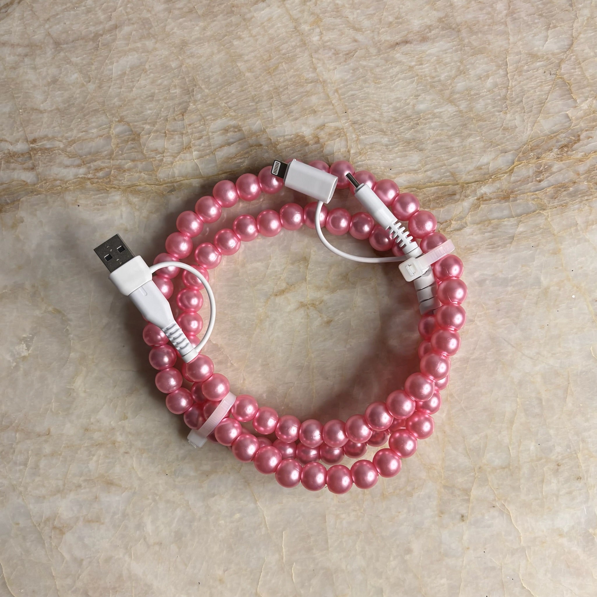 Pearly Pink- Beaded Phone Charger
