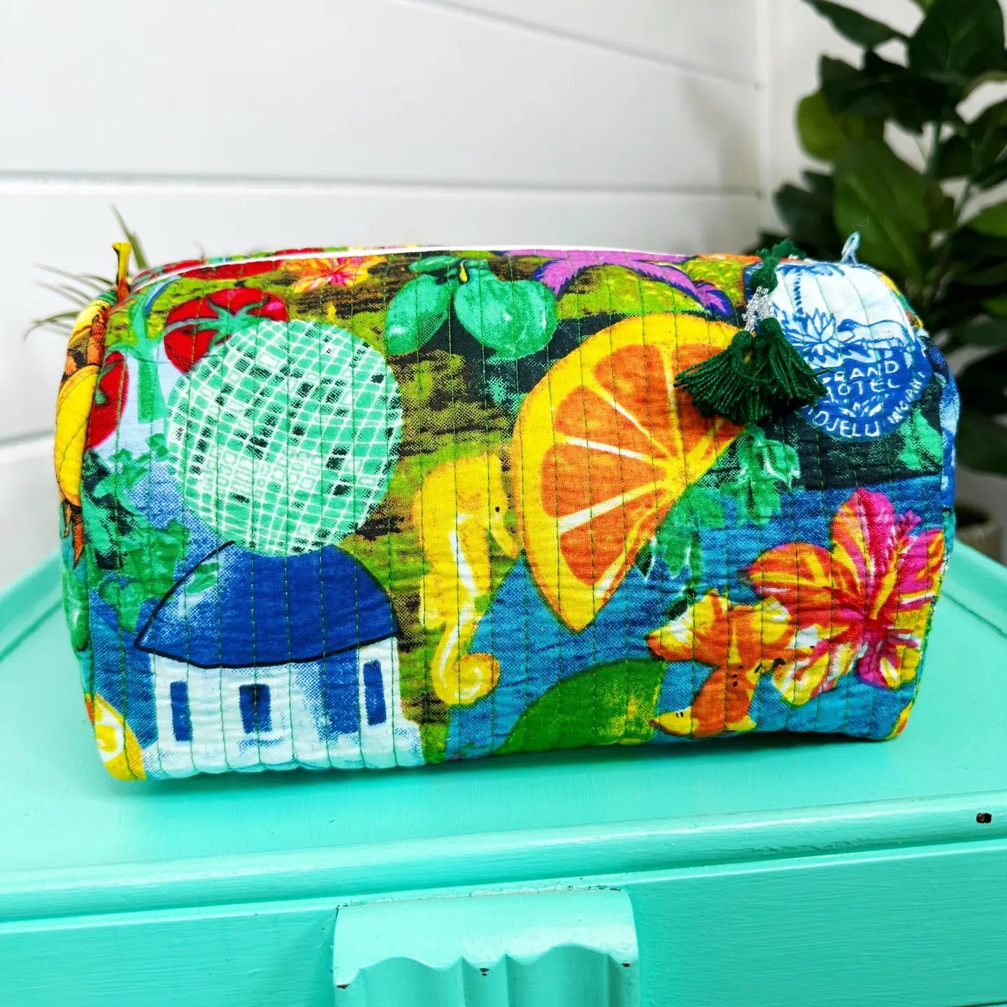Handmade quilted block print fabric. Perfect for travel, organizing, cosmetics, toiletries and more!