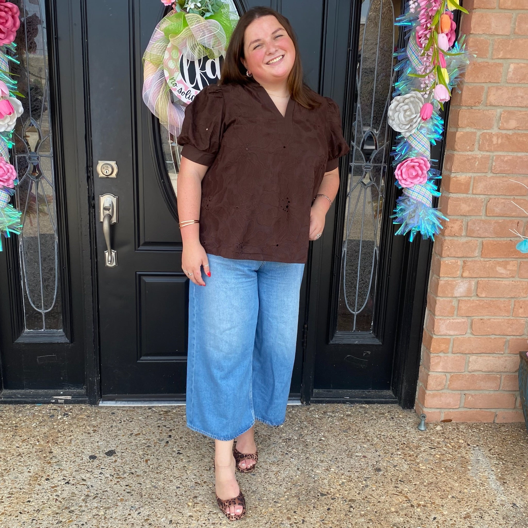 The Donna blouse is a simple floral stitching blouse, perfect for everyday wear. This top is timeless and classic, never going out if style or season! Available S-2X and also in Red.