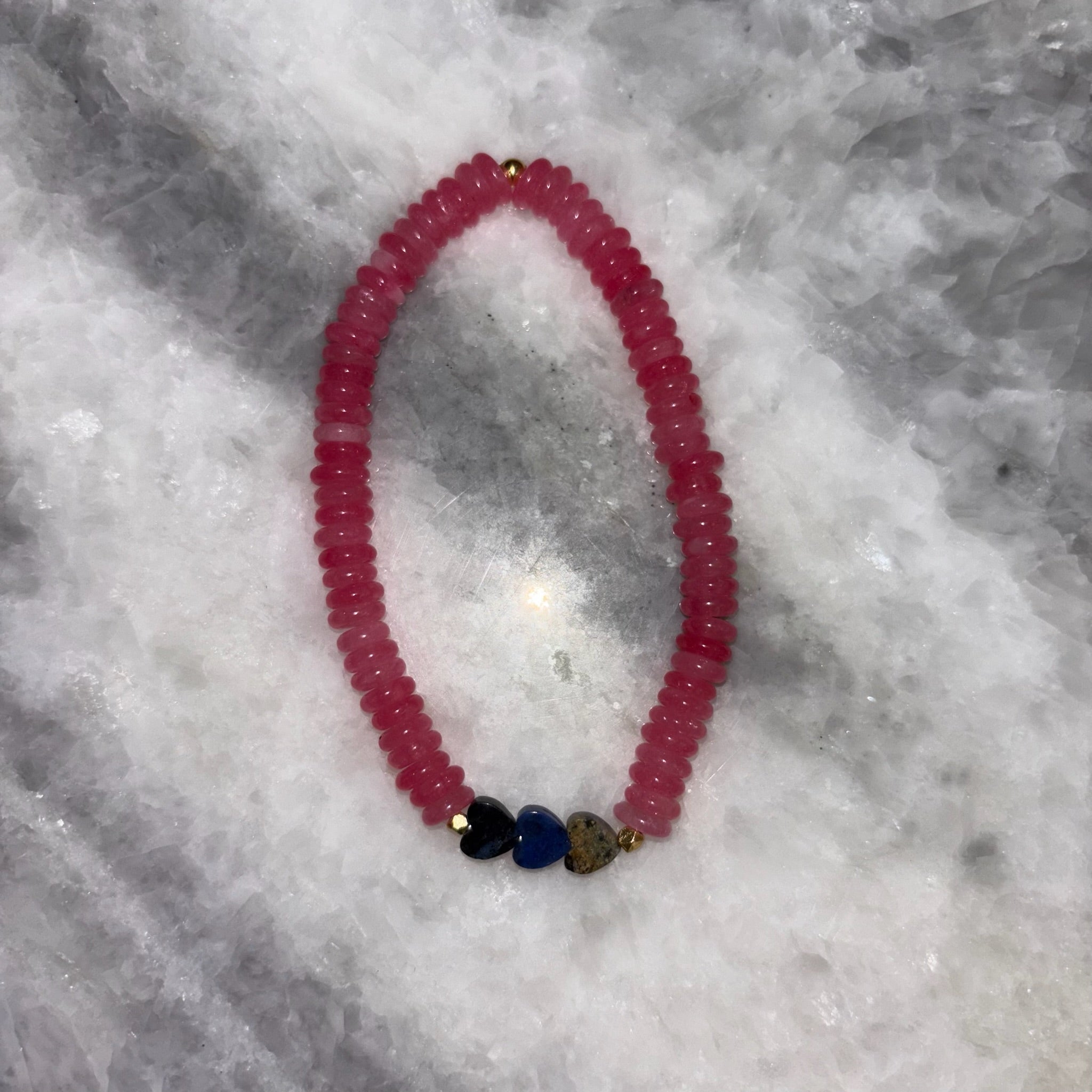 Triple Heart Beaded Bracelet- Blue & Light Pink