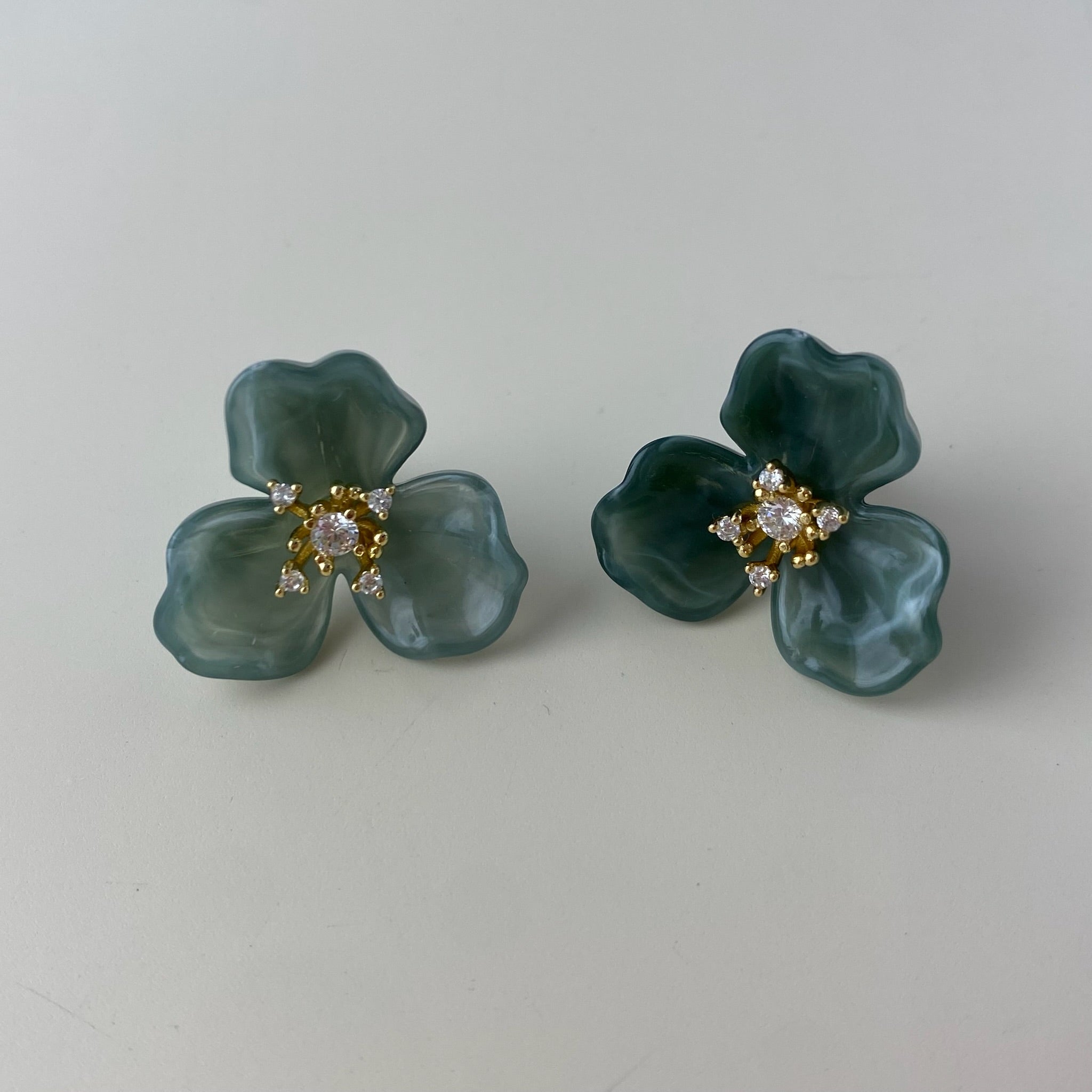 These are gorgeous floral studs with a bit of sparkle in the center!