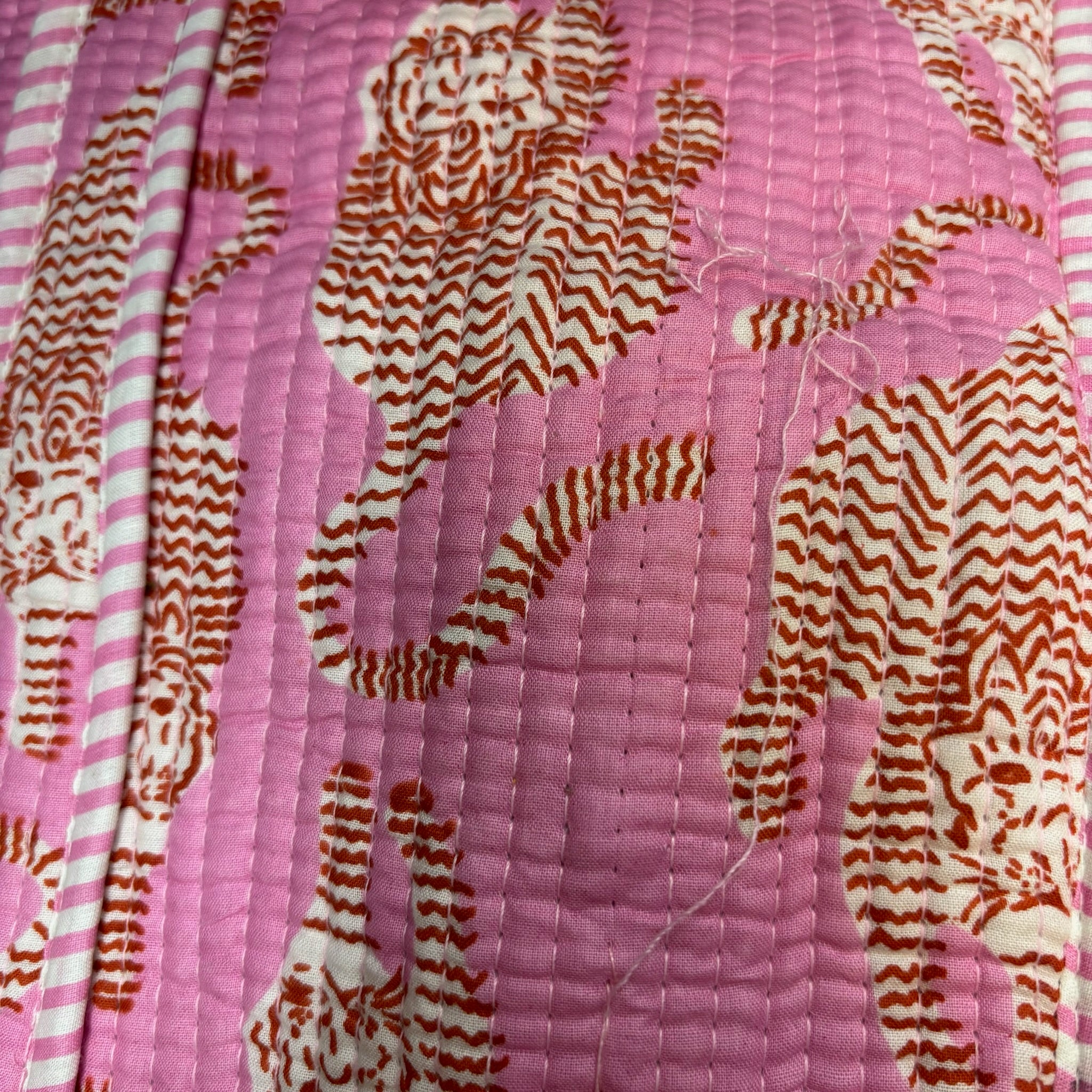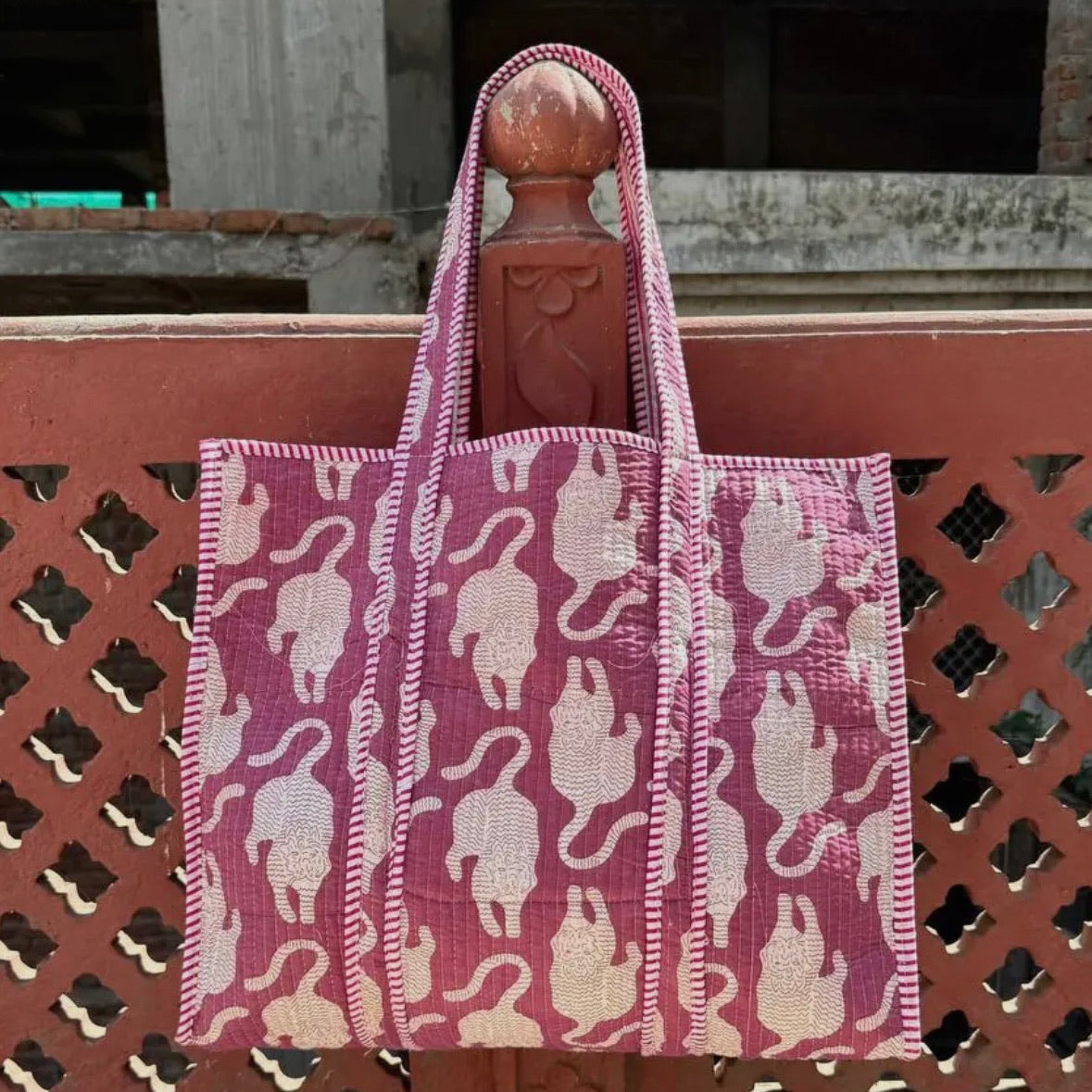 Quilted Tote Bag - Pink Tiger - Damaged (Threading Coming Loose)