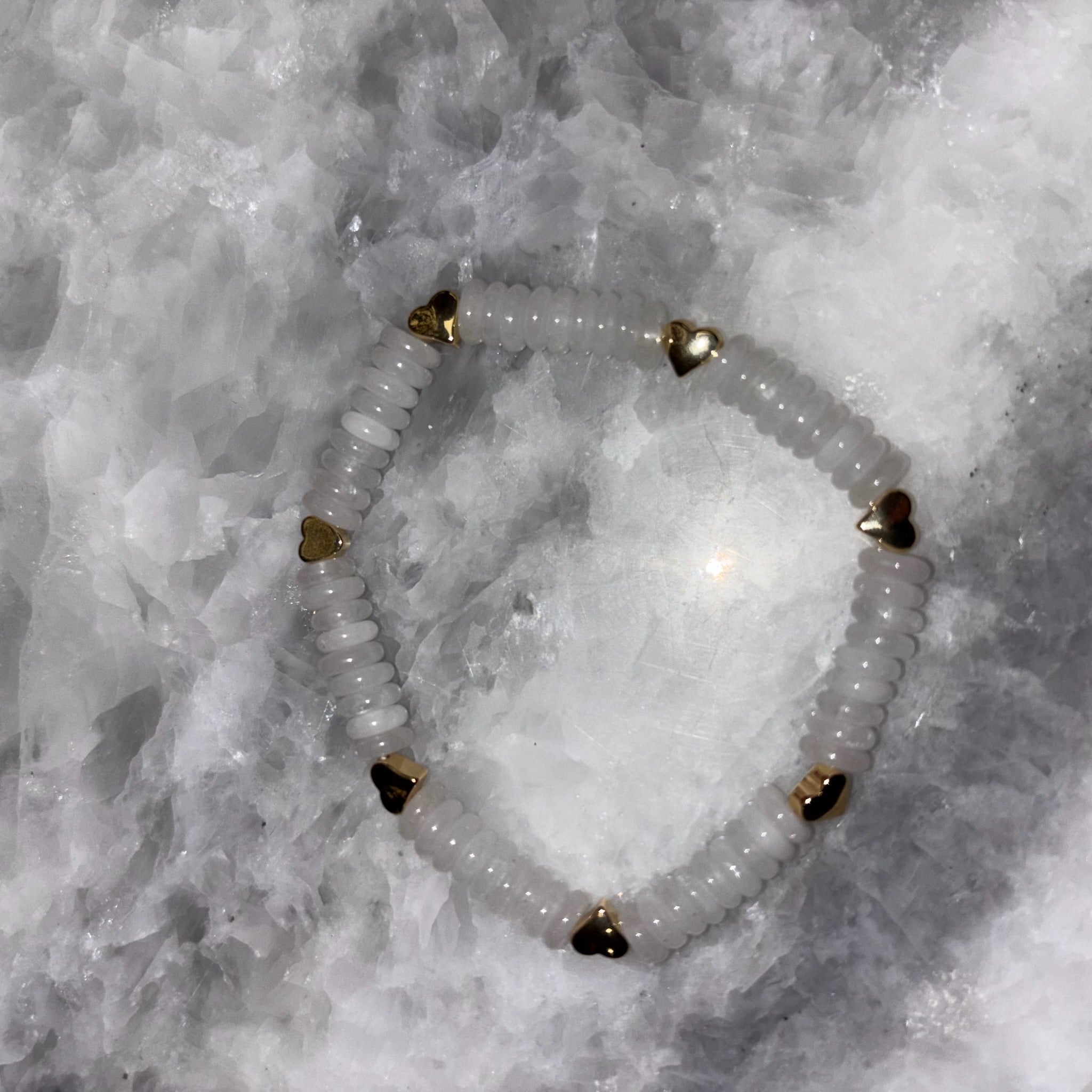 This bracelet is similar to our sweetie bracelet, but with smaller beads and has a gold heart every 9 beads.
