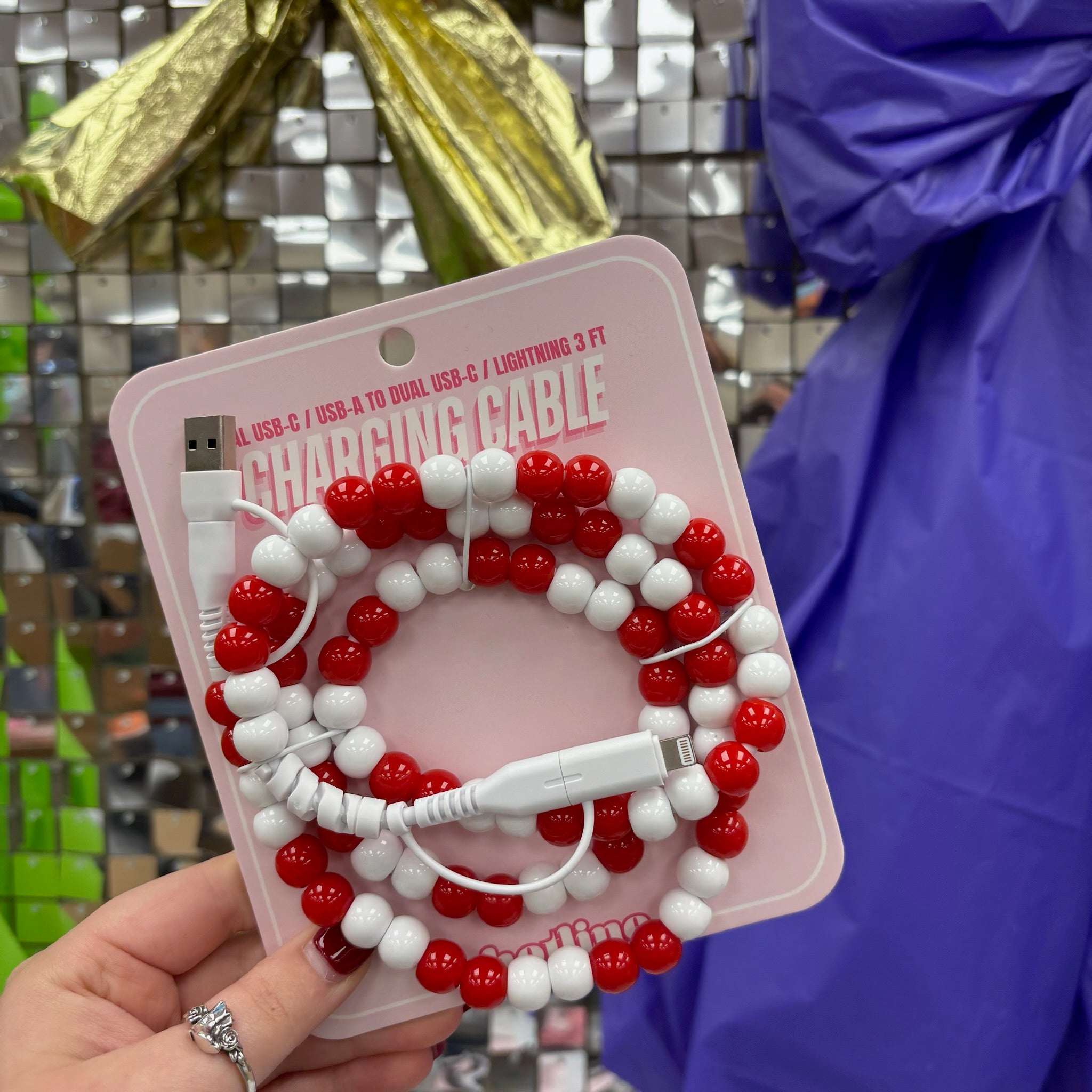 Stay charged and on trend with these cute and stylish charging cables! Perfect for your iPhone and androids with its dual lightning cord and USBc. Don't let your battery run out, stay connected in style.