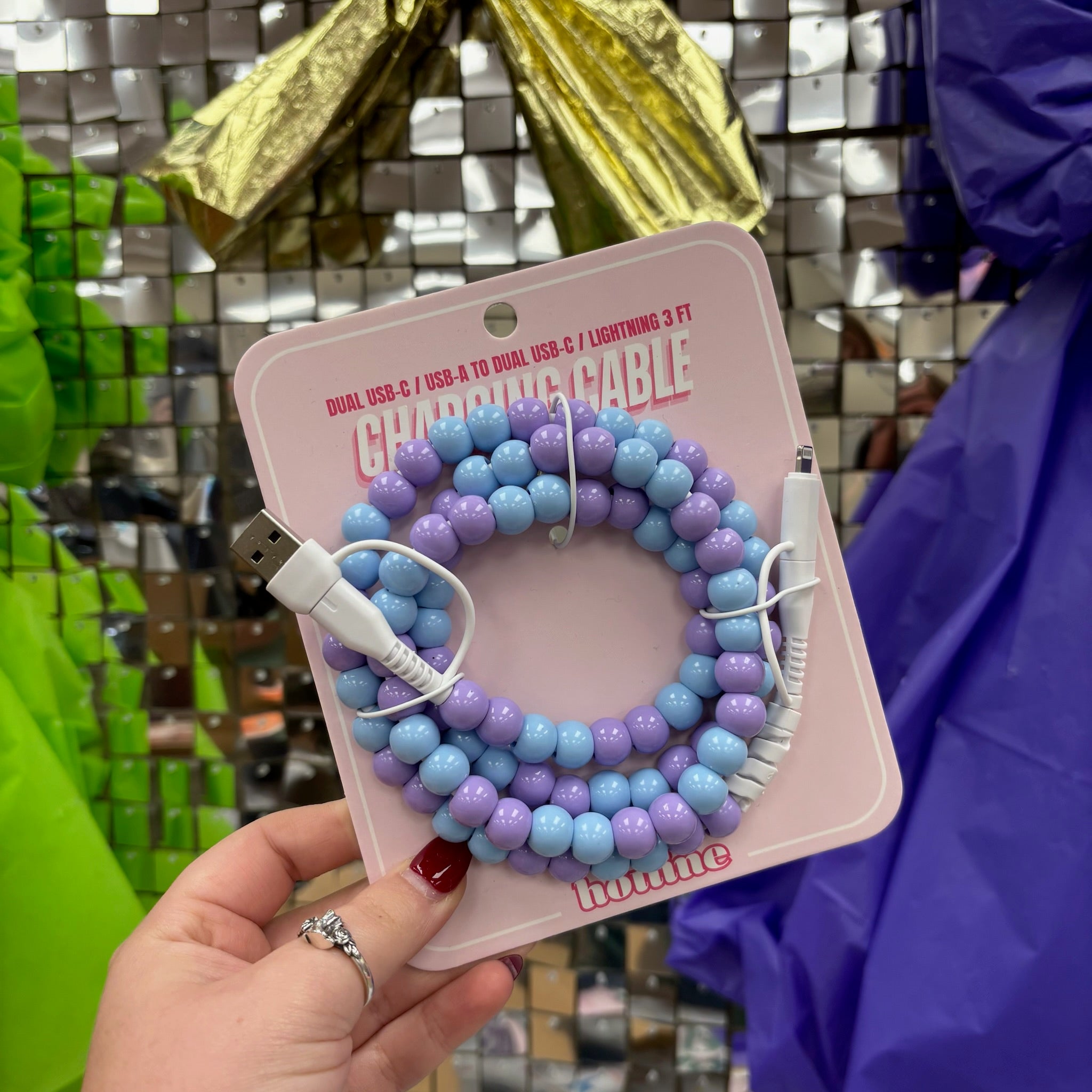 Stay charged and on trend with these cute and stylish charging cables! Perfect for your iPhone and androids with its dual lightning cord and USBc. Don't let your battery run out, stay connected in style.