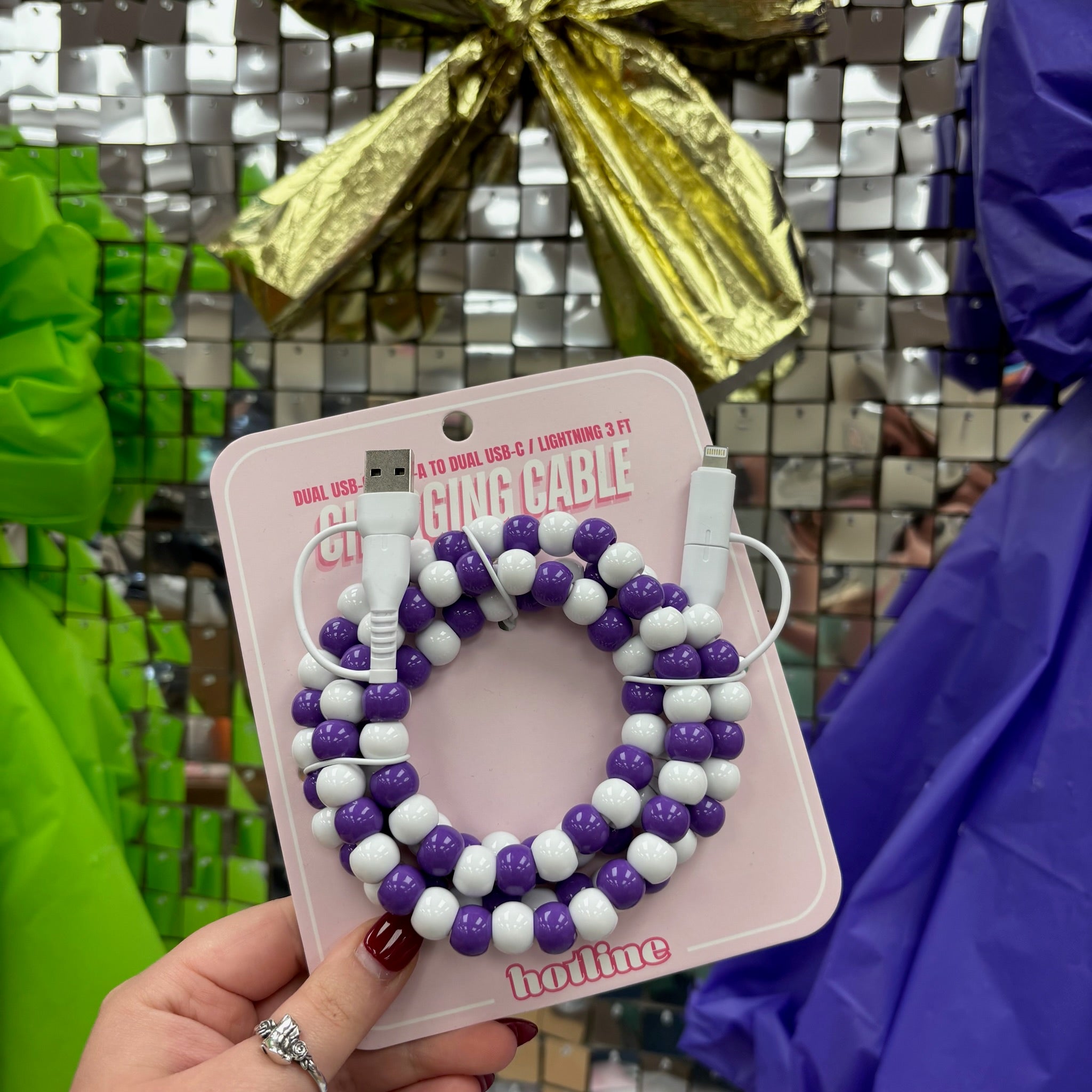 Stay charged and on trend with these cute and stylish charging cables! Perfect for your iPhone and androids with its dual lightning cord and USBc. Don't let your battery run out, stay connected in style.